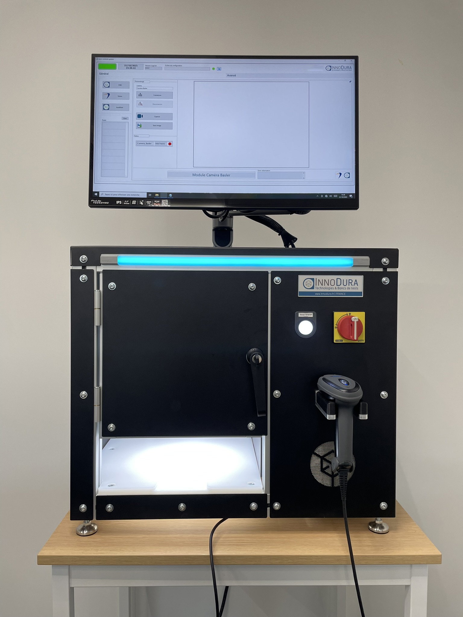 Fort de son expertise en IA, en vision industrielle et en conception de machines spéciales, INNODURA a développé un ensemble mécanique sur mesure associé à une plateforme logicielle intégrant des algorithmes d’intelligence artificielle avancés.