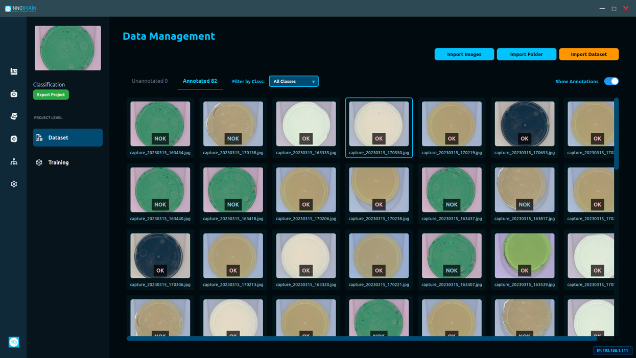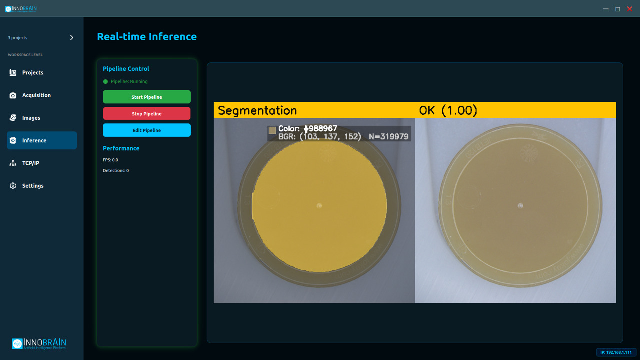 - Création et optimisation de modèles IA : un modèle détecte les graisses OK/NOK, tandis qu’un autre réalise la classification par couleurs